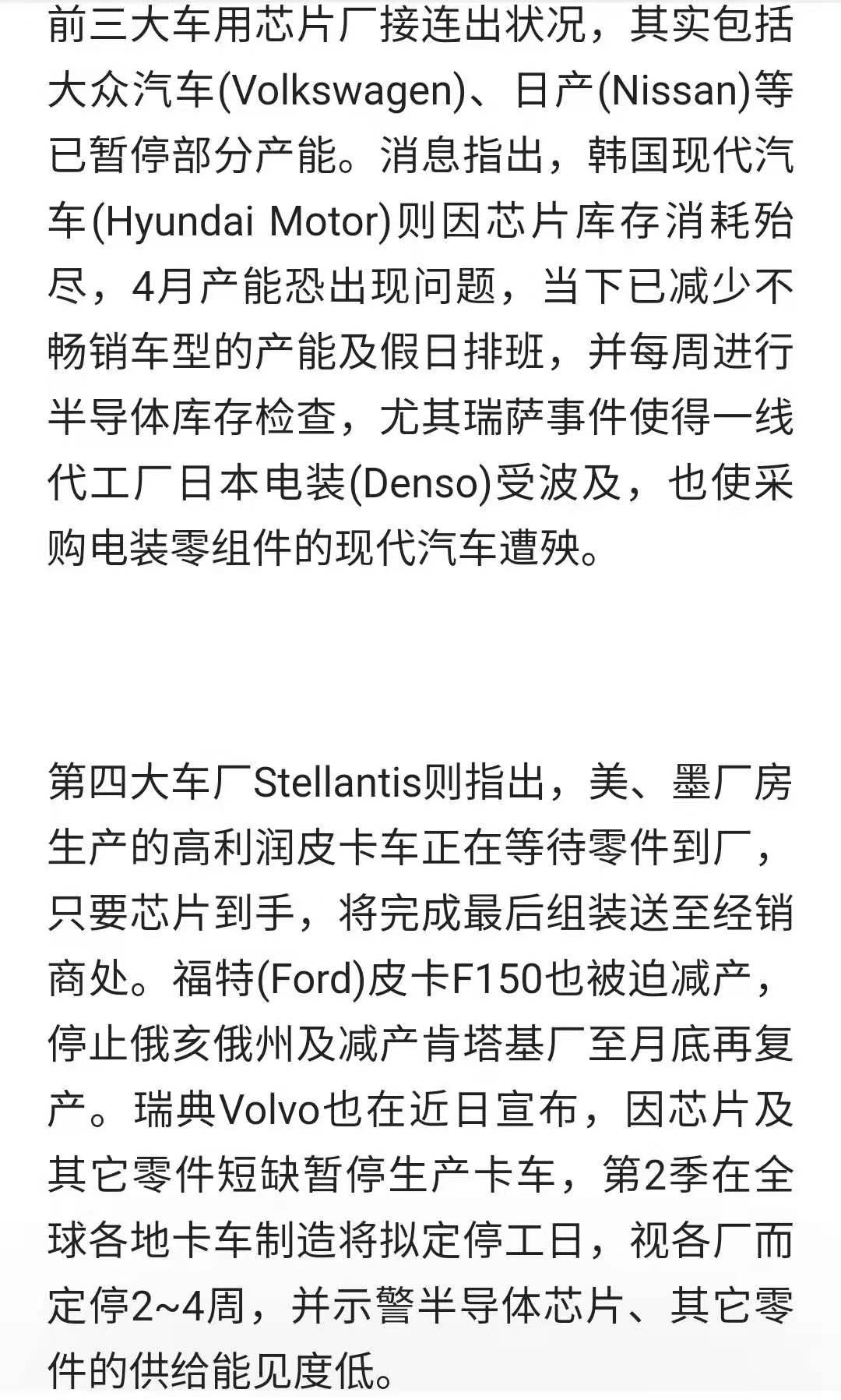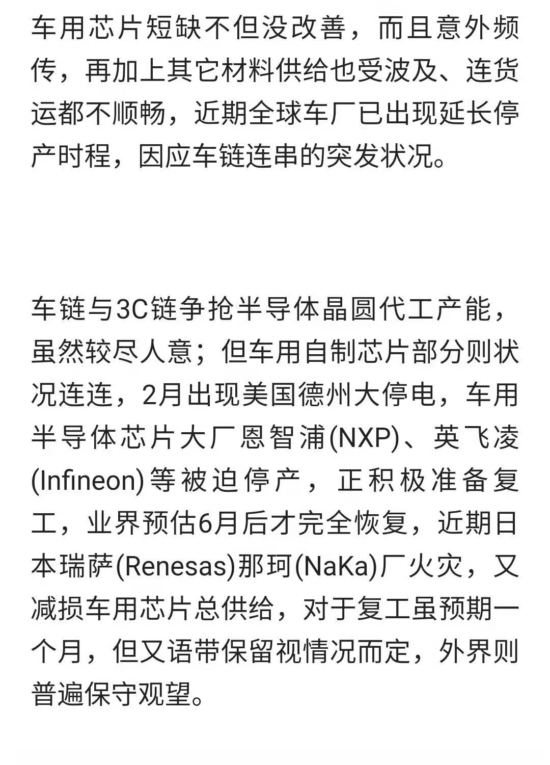 缺芯+交通不暢 全球車廠減停產(chǎn)恐延續(xù)
