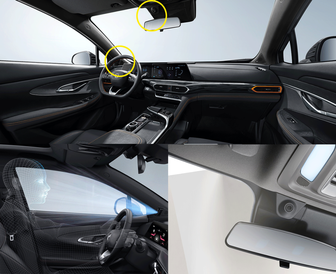 另一種則是集成在內(nèi)后視鏡位置,除了服務(wù)駕駛員,還可以額外提供乘員監(jiān)控功能(車(chē)內(nèi)行車(chē)記錄功能),甚至包括兒童/遺留物檢測(cè)、安全帶檢測(cè)和識(shí)別特定乘客等功能。