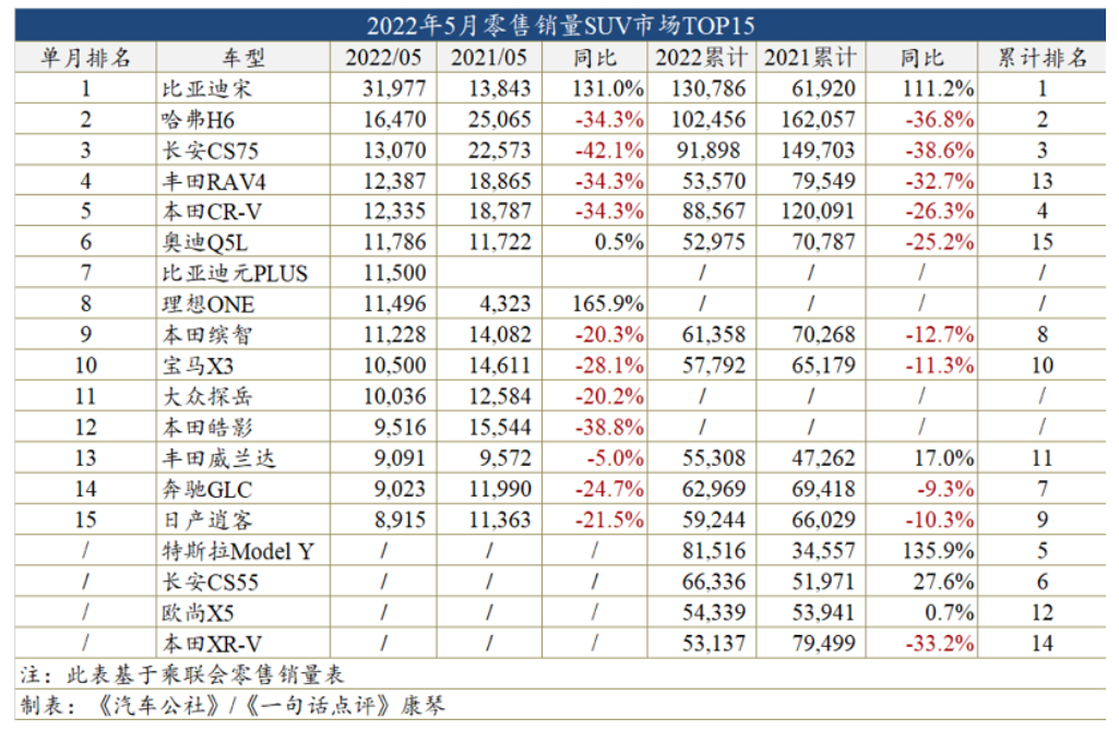 的確,就5月自主SUV銷量十強(qiáng)名單而言,數(shù)量上自主與合資各占半壁江山,質(zhì)量上自主中的比亞迪宋和元PLUS乃至理想One都處于爬坡期,未來可能會(huì)更上一層樓。
